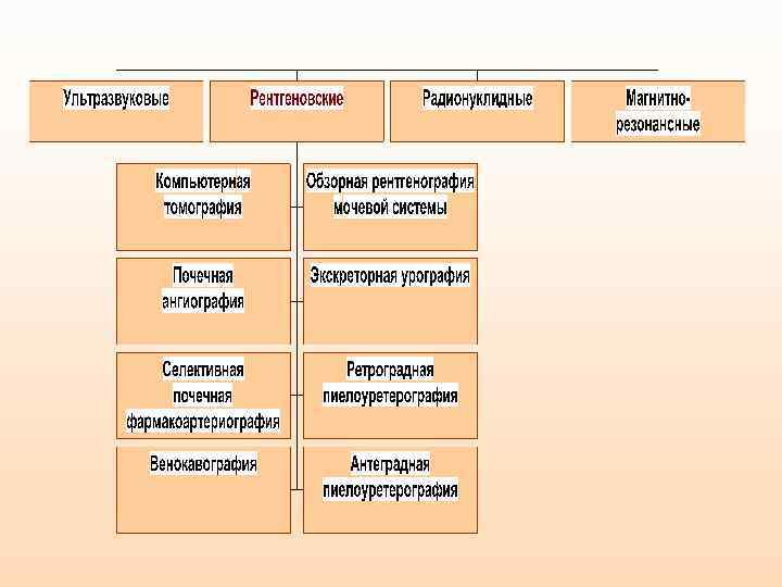 Ретроградная пиелоуретерография • Связана с необходимостью цистоскопии и катетеризации мочеточника. • Ретроградная пиелоуретерография неоходима при диагностике: – туберкулеза почек (позволяет выявить ранние деструктивные изменения в чашечках); – при медуллярном некрозе как осложнение острого пиелонефрита; – при папиллярной опухоли лоханки; – стриктуре лоханочно-мочеточникового сегмента и мочеточника; – при необходимости уточнить число и локализацию конкрементов.