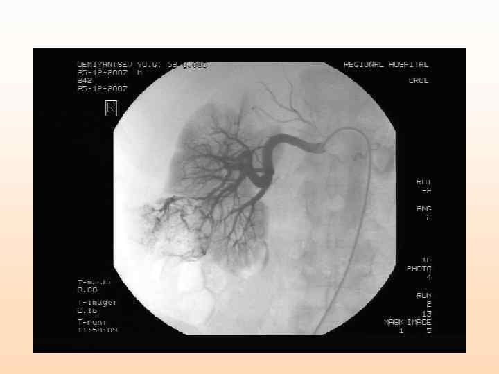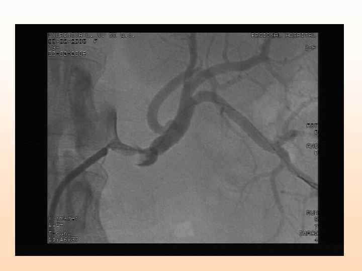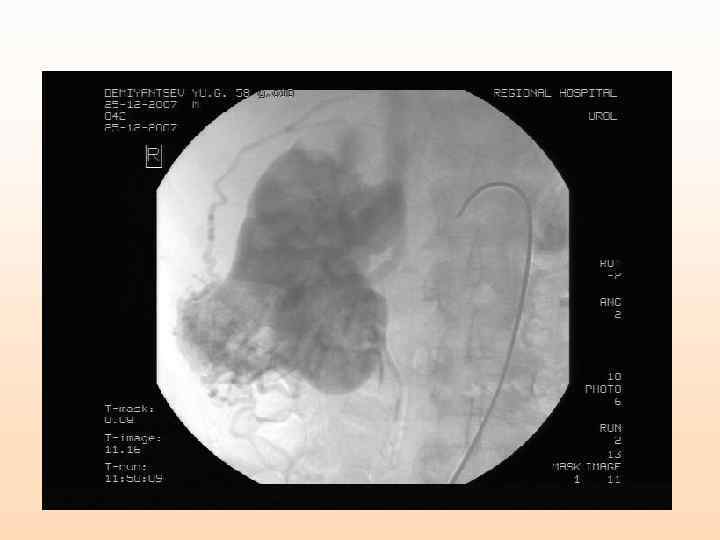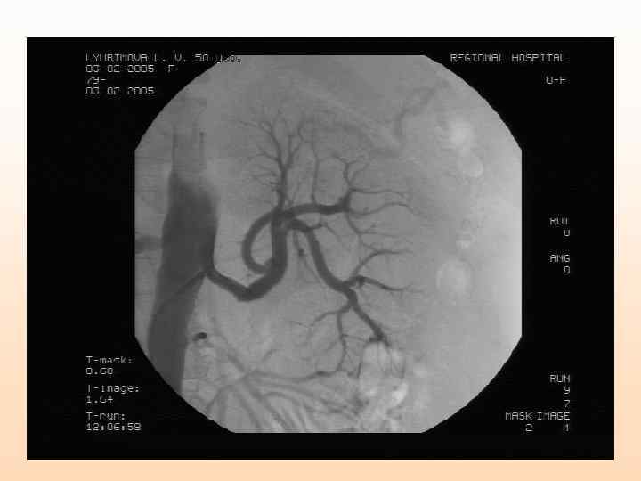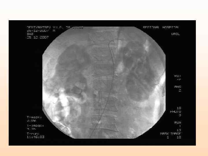 Селективная почечная ангиография • Катетер вводят в каждую из почечных артерий • Преимущества: на ангиограммах отсутствуют тени сосудов других органов. • Недостатки: искаженное изображение гипердиагностика (например, опухоли). • Проводят после обзорной аортографии. Селективная почечная фармакоартериография • Для исключения опухоли вводят 0, 5 -1 мл адреналина в почечную артерию вазоконстрикция в области ворот почки. • При опухоли сосуды лишены эластических волокон и не подвергаются сужению.