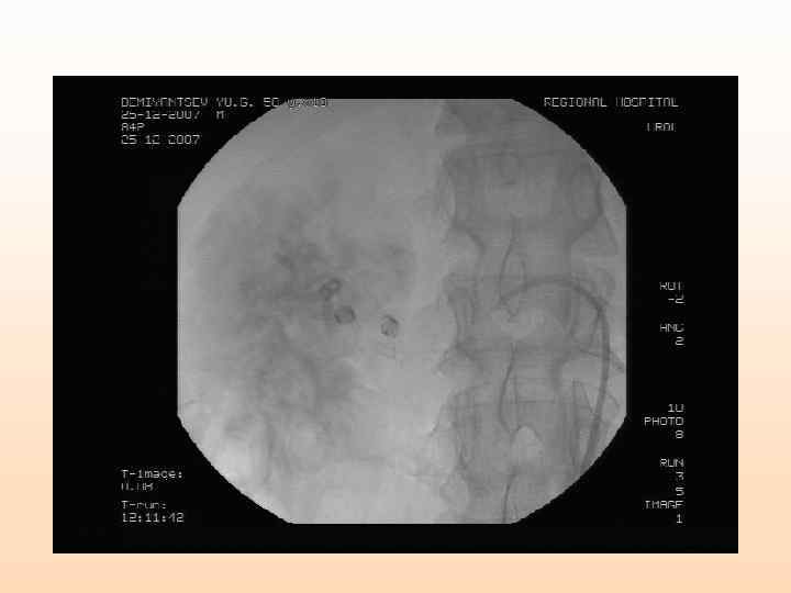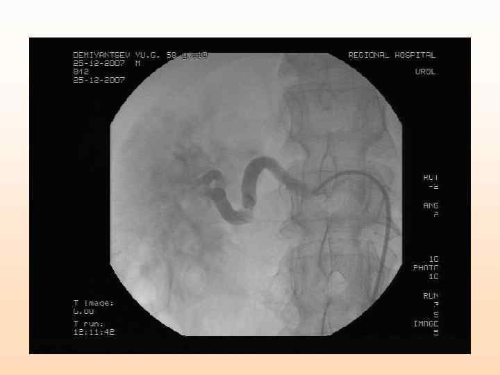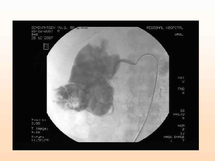 • Время производства снимков через 7 -10 мин, затем через 20 -25 мин, а при необходимости и в более поздние сроки; • Отсроченные снимки могут производится через 1 -2 -3 -4 ч: – гидронефроз, – кавернозный туберкулез. • Для получения более четкого изображения ЧЛС проводят инфузионную урографию, которая выполняется с большим количеством рентгено-контрастного вещества (100 мл), разведенного в 200 мл физиологического раствора или 5 % глюкозы – в течение 10 мин.