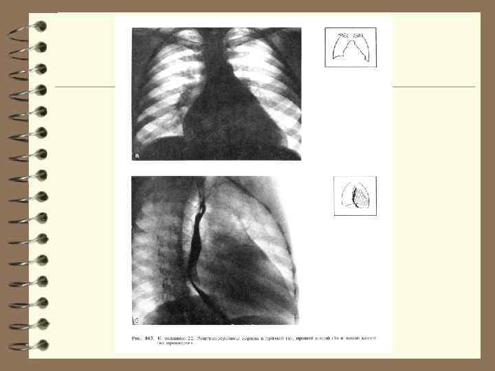 норма Важным рентгенологическим признаком расширения ЛЖ является удлинение нижней дуги левого контура сердца в прямой проекции. умеренная дилатация ЛЖ (удлинение дуги ЛЖ, закругление верхушки и смещение ее вниз); выраженная дилатация ЛЖ ( «аортальная конфигурация» сердца) Верхушка сердца при этом смещается влево или влево и вниз и как бы погружается в тень диафрагмы. При значительном смещении верхушки влево угол между сосудистым пучком и контуром ЛЖ становится менее тупым, а “талия” сердца — более подчеркнутой (в).