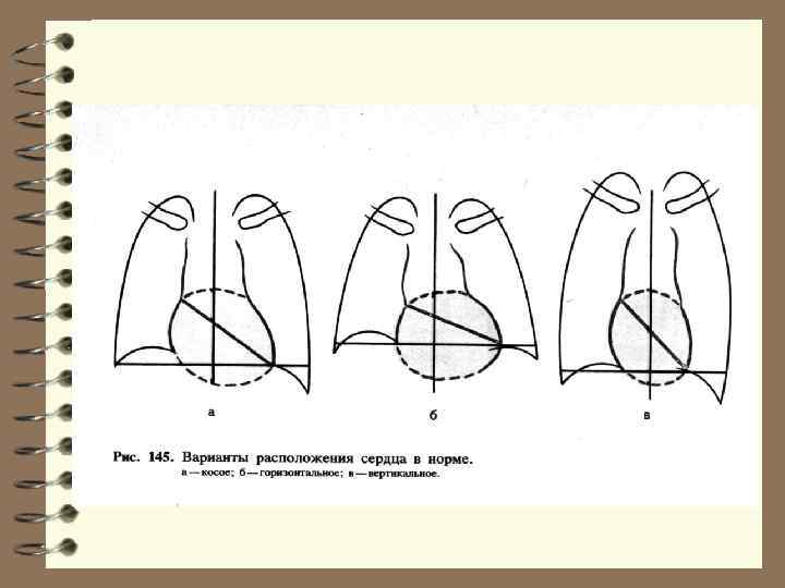 Нормальная конфигурация сердца 1. Нормальные границы сердца. 2. Размеры сердца: длинник - 13 -15 см; поперечник - 11 -13 см; косой размер - 9 -11 см.