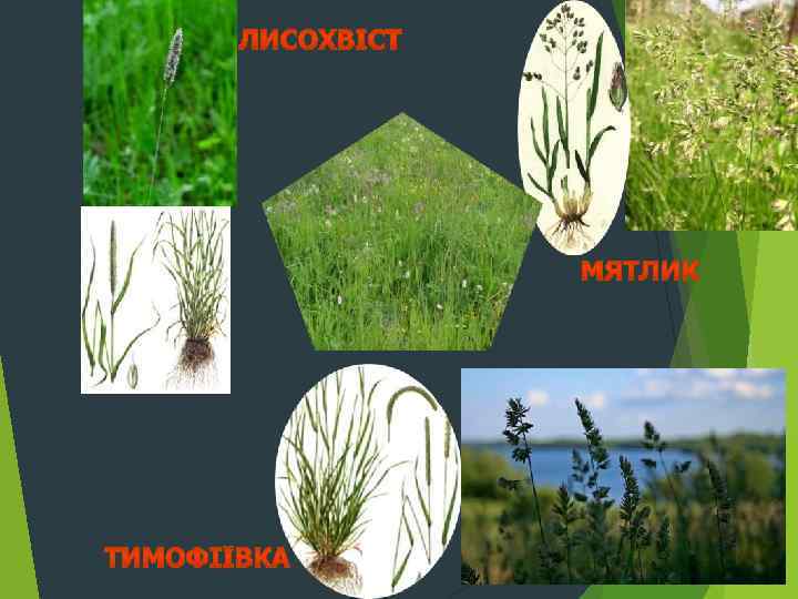 Трав'янисті рослини утворюють на луках суцільний покрив. Їхні корені тісно переплітаються, утворюючи дернину, яка надійно захищає ґрунт від висихання та руйнування.