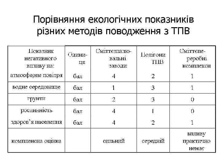 Морфологічний склад побутових відходів м. Львова 6% 3% 1% 5% 25% 3% 1. Папір, картон 2. Харчові відходи 3. Дерево 4. Метал чорний 8% 5. Текстиль 6. Скло 7. Шкіра, гума 5% 1% 8. Кості 9. Каміння 3% 10. Пластмаса 11. Вуличний відсів 40%