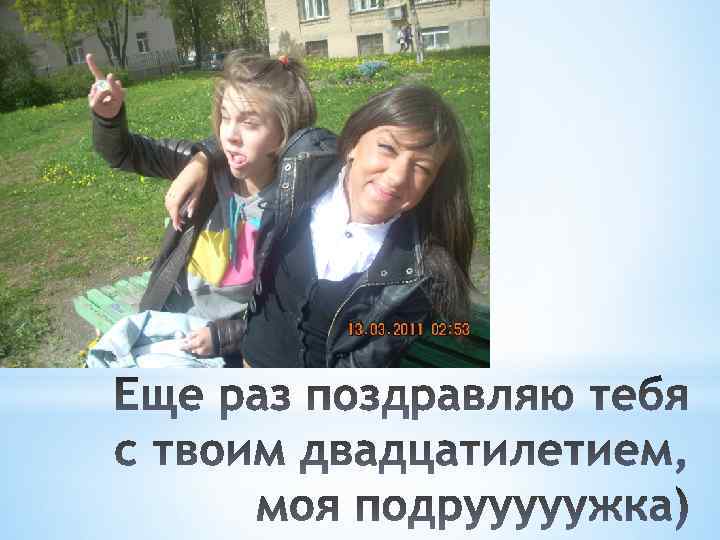 Любимой подруге в День ее двадцатилетия! Крошка моя, спасибо что ты есть у меня, спасибо твоим родителям, ты для меня многое сделала, будь счастлива моя родная. С Днем твоего Рождения, с твоим первым юбилеем!