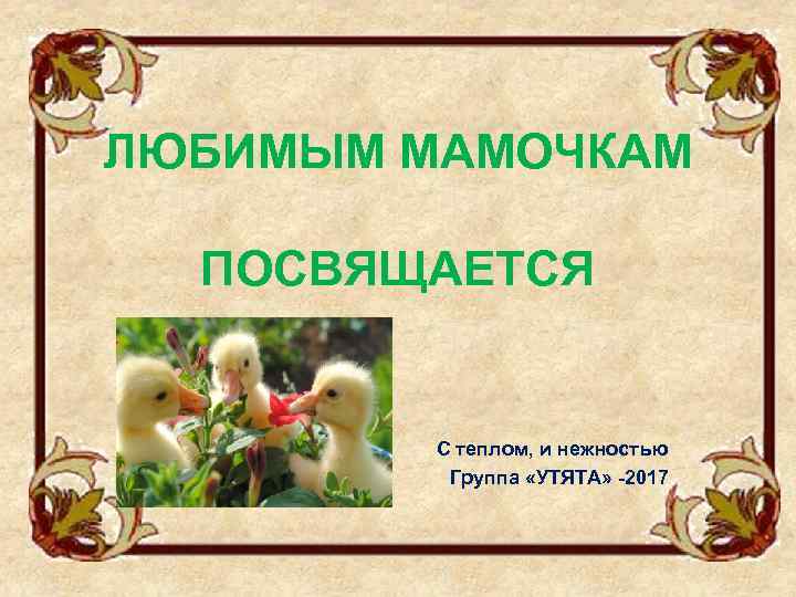 ЛЮБИМЫМ МАМОЧКАМ ПОСВЯЩАЕТСЯ С теплом, и нежностью Группа «УТЯТА» -2017