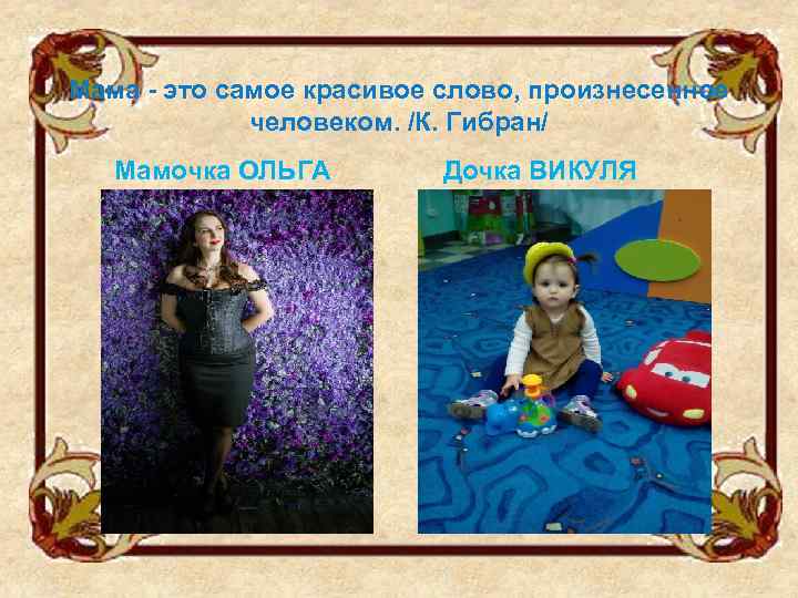 Мама - это самое красивое слово, произнесенное человеком. /К. Гибран/ Мамочка ОЛЬГА Дочка ВИКУЛЯ