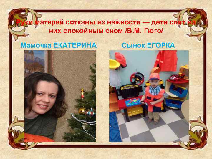 Руки матерей сотканы из нежности — дети спят на них спокойным сном /В. М. Гюго/ Мамочка ЕКАТЕРИНА Сынок ЕГОРКА