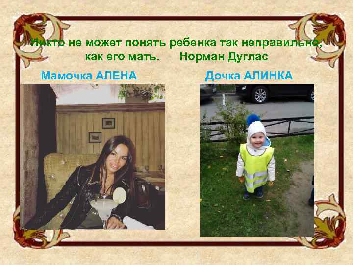 Никто не может понять ребенка так неправильно, как его мать. Норман Дуглас Мамочка АЛЕНА Дочка АЛИНКА