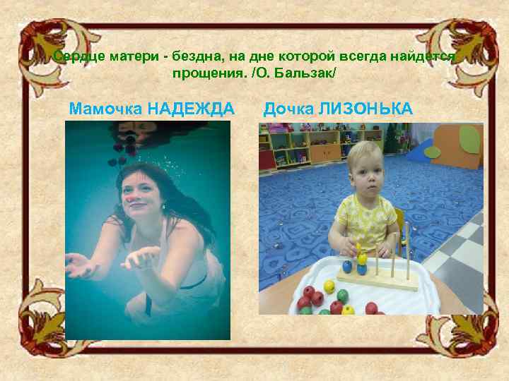 Сердце матери - бездна, на дне которой всегда найдется прощения. /О. Бальзак/ Мамочка НАДЕЖДА Дочка ЛИЗОНЬКА