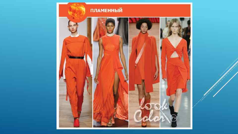 Яркий и легкий пламенный красный будет отлично смотреться с более нежными оттенками. Подойдет в качестве любых повседневных и вечерних нарядов, но эффектнее всего будет смотреться в спортивном стиле. ПЛАМЯ
