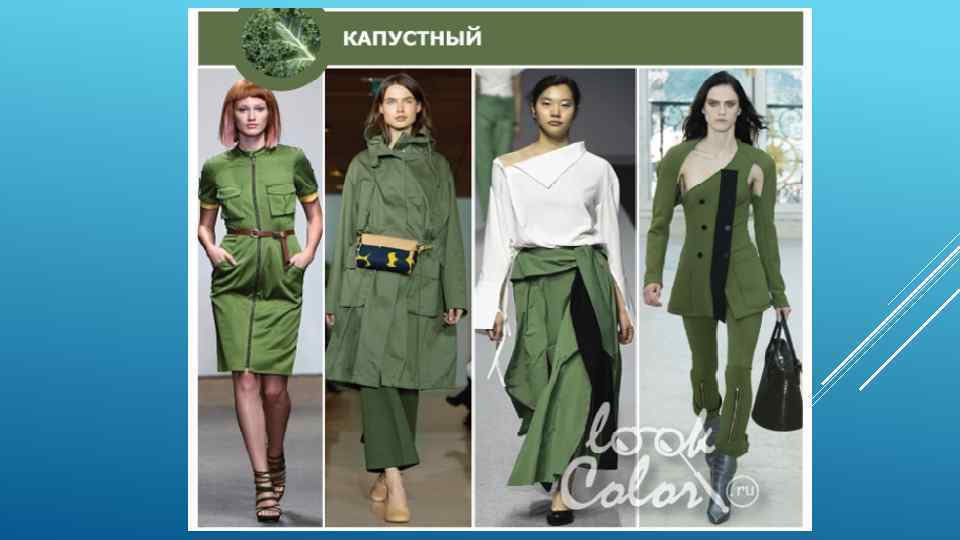 Кале - это разновидность капусты. Цвет Кале напоминает защитный цвет, только более мягкий. Подобный оттенок зеленого будет выигрышно смотреться в офисном гардеробе. Он идеально комбинируется со всеми другими цветами. КАЛЕ