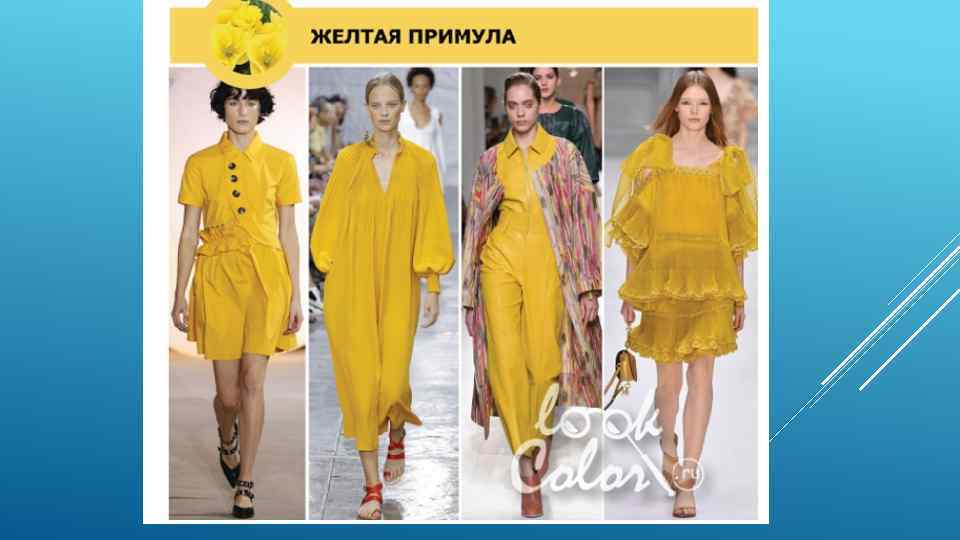 Этот солнечный желтый достаточно универсален для весны и лета. Платье, юбка, жакет, - любой предмет гардероба в этом цвете будет выглядеть бесподобно стильно. Он напоминает о восхитительных весенних днях и жарких летних ночах. Идеально сочетается с модным весенним цветом Райский Остров (5). ЖЕЛТАЯ ПРИМУЛА