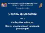 Работы Фейербаха Философские и религиозные идеи, изложенные в работах Фейербаха, оказали сильное влияние на Маркса, Энгельса и других духовных вождей немецкой социалдемократии. Выдающийся русский философ С. Булгаков писал, что если в Марксе германский материалистический социализм имеет своего политэконома, то Фейербах является его богословом и философом.