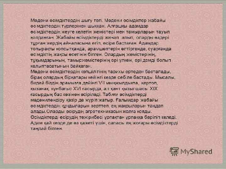 Мәдени және жабайы, біржылдық және көп жылдық, дәрілік және әсемдік өсімдіктер. Өсімдіктердің тіршілік формалары: ағаштар, бұталар, бұташықтар, шөптесін өсімдіктер. Қасымова ЖБЛ-411 Айна