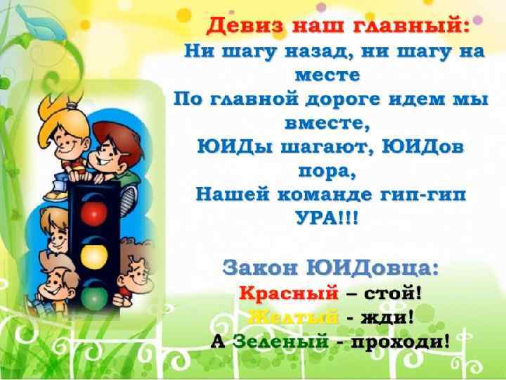 Эмблема нашего отряда НА ЗНАКЕ СМОТРИ СВЕТОФОРА ЯРКО ГОРИТ И КАК БУДТО, УЛЫБАЯСЬ, ГОВОРИТ: САМЫХ СМЕЛЫХ И УМЕЛЫХ ПРИГЛАШАЮ Я В ЮИД!