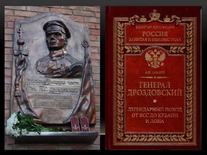 СМЕРТЬ М. Г. ДРОЗДОВСКОГО Памяти генерала М. Г. Дроздовского и дроздовцев. Сен-Женевьев-де-Буа Памяти генерала М. Г. Дроздовского и дроздовцев, павших за Родину и на чужбине скончавшихся. Галлиполи Кубанский войсковой собор Святого Александра Невского, где первоначально был похоронен М. Г. Дроздовский
