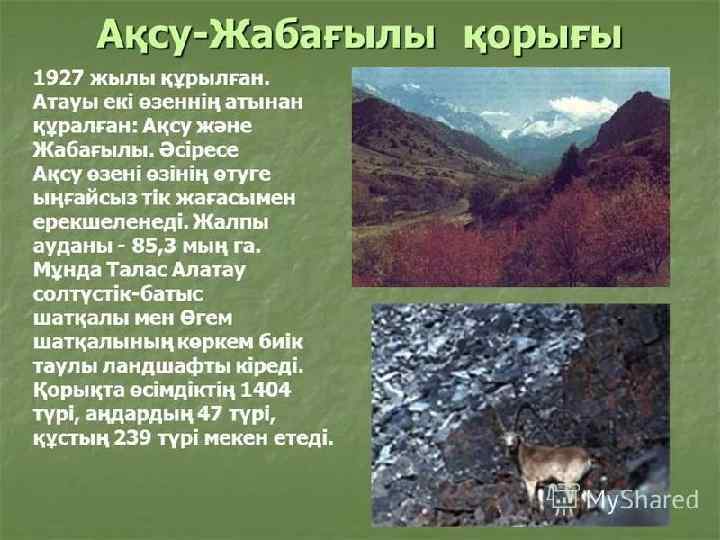 Кармышева ханым: “Ғасырлар бойы жасайтын ғажайып арша алқаптары Қазақстан бойынша тек Ақсу-Жабағылы аумағында және Сайрамсу мен Сарыайғыр шатқалдарында ғана сақталып қалған”, – деп жазды.