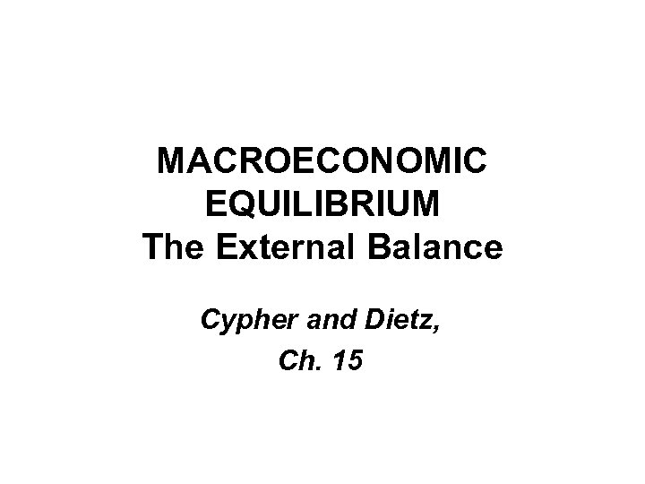 MACROECONOMIC EQUILIBRIUM The External Balance Cypher and Dietz, Ch. 15