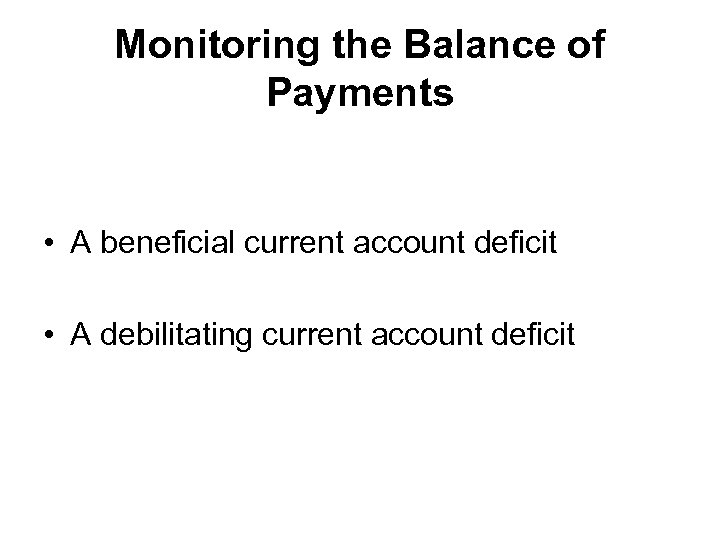 Monitoring the Balance of Payments • A beneficial current account deficit • A debilitating current account deficit