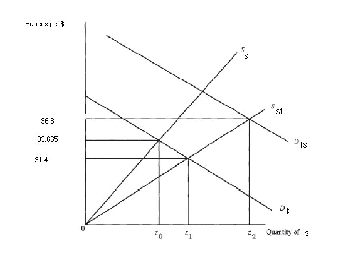 Supply and Demand in the Market for Foreign Currency Example: Market for U. S. $ in Sri Lanka Demand for US $ in Sri Lanka (those supplying rupees in return for $) • • importers of foreign goods into Sri Lanka sri lankans traveling abroad sri lankans investing abroad any one else currently holding rupees and needs $ in return Supply of US $ into Sri Lanka (those supplying $ in return for rupees) • exported of Sri Lankan goods into foreign countries • foreigners traveling to Sri Lanka • foreigners investing in Sri Lanka • any one else currently holding $ and needs rupees in return