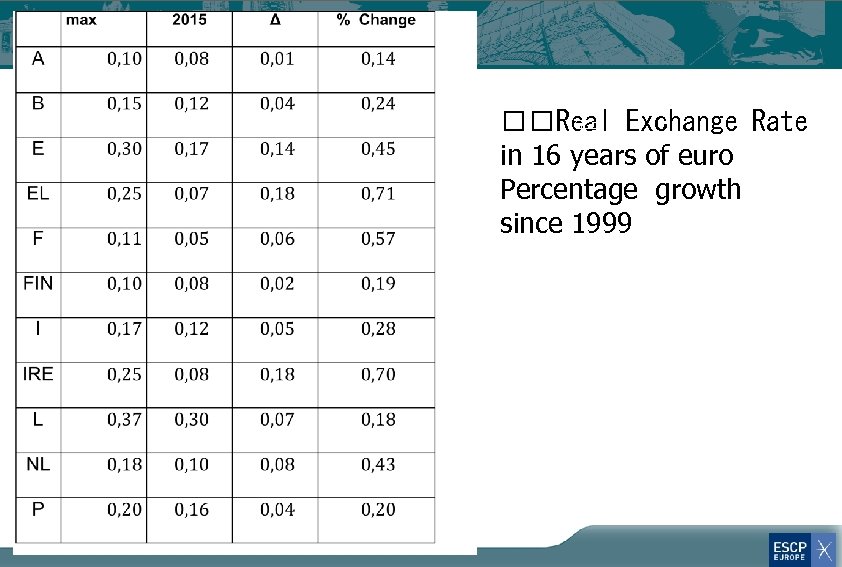 French Real exchange rate with Germany in 2014 = 1 * 1. 26 1. 17 = 1. 08 On average French goods have worsened their relative position with German goods by 8 % in 15 years