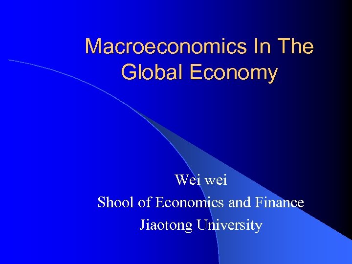 Macroeconomics In The Global Economy Wei wei Shool of Economics and Finance Jiaotong University