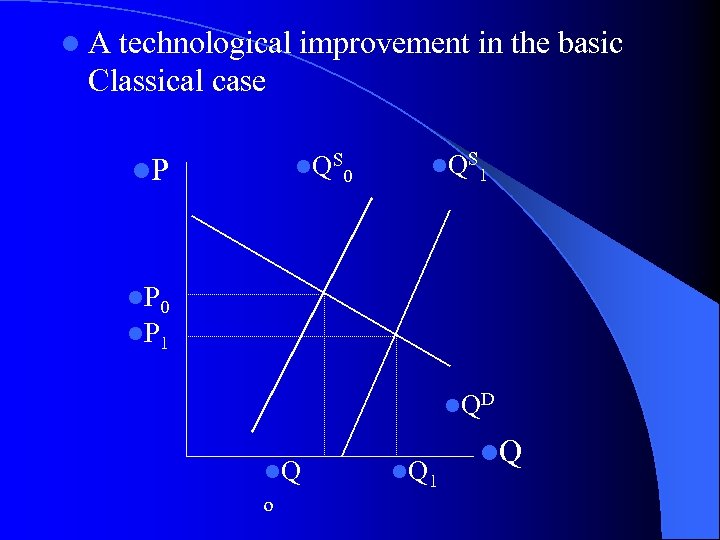 l. A technological improvement in the Classical case l l Q S 0 l Q S 1 l. P l P 0 l P 1 l QD l. Q o l Q 1 l. Q