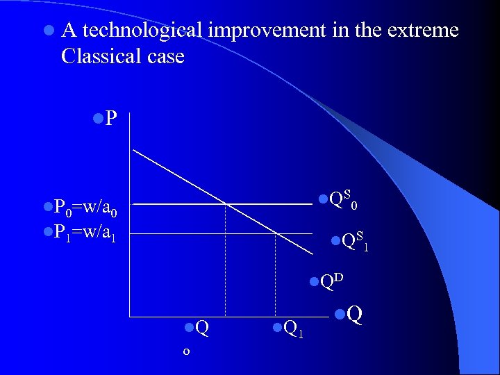 l. A technological improvement in the extreme Classical case l. P l Q S 0 l. P 0=w/a 0 l. P 1=w/a 1 l Q S 1 l QD l. Q o l Q 1 l. Q