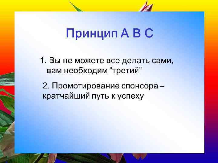 Сделайте то… Сделайте то, что говорит спонсор Сделайте только то, что говорит спонсор Приглашайте на любом ранге Врач: «Когда я уже стану таким великим врачом, когда не над будет надевать белый халат» • Водитель: «Когда я стану таким высококлассным водителем, когда не надо будет рулить» • •