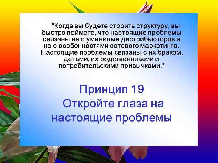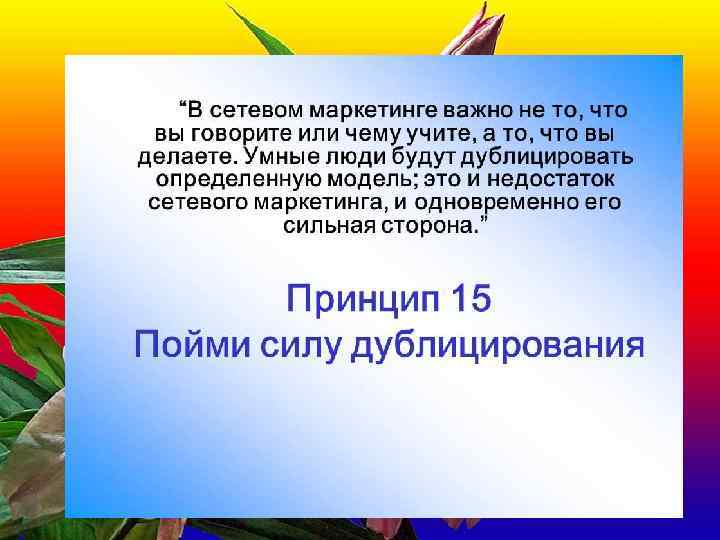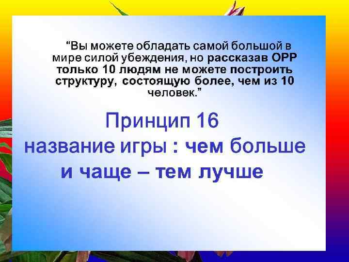 Основное правило сетевого маркетинга • Если вы хотите преуспевать в этом бизнесе, в каком ранге бы вы не находились, необходимо приглашать людей в бизнес, общаться с людьми. • Дублицировать , обучать приглашать, обучать приглашать • На приглашения необходимо выделять время ЕЖЕДНЕВНО