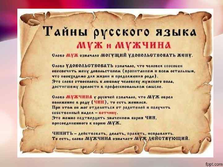 Предназначение мужчины и женщины Мужчина выступает как дух, несущий цель и программу развития, он выступает как активное творящее начало. Как солнце посылающее лучи тепла и света на землю, стимулируя рост и развитие всего живого. мужское рациональное духовное божественное культурное Женщина – это материя (как мать земля), принимающая цель духа(мужчины). Таким образом, женщина в некоторой степени пассивное начало, точнее сказать вбирающее. женское чувственное телесное греховное природное