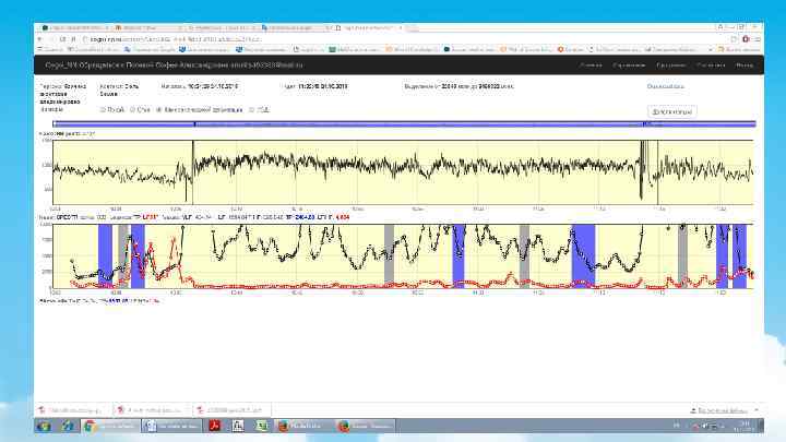 При использовании периодограммного метода, оценивались следующие характеристики ВСР: • TP, мс2 – суммарная мощность спектра РГ - отражает общую активность центрального и автономного контуров регуляции сердечного ритма; • LF, мс2 –мощность спектра РГ в диапазоне низких частот (0, 04 -0, 15 Гц) – отражает активность симпатического звена в регуляции сердечного ритма; • HF, мс2 –мощность спектра РГ в диапазоне высоких частот (0, 15 -0, 6 Гц) – отражает активность парасимпатического звена в регуляции сердечного ритма; • LF/HF – соотношение мощностей спектра РГ в диапазонах низких и высоких частот (коэффициент вегетативного баланса) – отражает тонус вегетативной нервной системы. • При использовании динамического спектрального анализа оценивали динамику параметров TP, LF, HF, LF/HF.