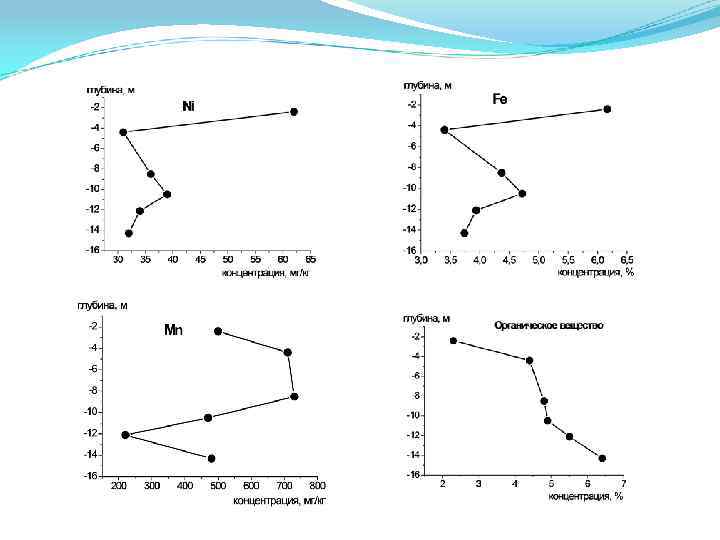 Результаты расчета форм миграции химических элементов в воде (программа PHREEQC и Geochemist’s Workbench) Преобладающая форма – свободные ионы (не связанные в комплексные соединения) миграционные формы Mn Mn 2+ Mn. SO 4 Mn. Cl+ Mn. Cl 2 миграционные формы Zn Zn. Cl 2 Ni 2+ Ni. SO 4 Zn. Cl+ Zn. SO 4 5%2% Zn 2+ миграционные формы Ni 9% 3% 11% 82% 14% 91% 72%