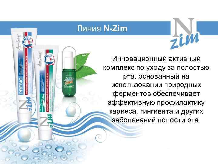 Линия N-Zim Инновационный активный комплекс по уходу за полостью рта, основанный на использовании природных ферментов обеспечивает эффективную профилактику кариеса, гингивита и других заболеваний полости рта.