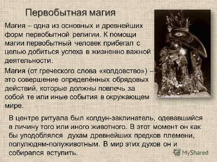 План: 1. Понятие «Магия» . 2. Первобытная магия. 3. Классификация магии. 4. Магические практики и традиции