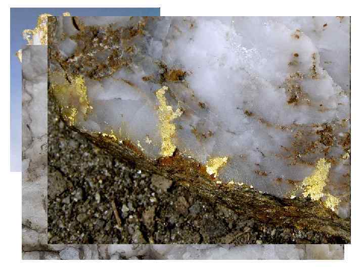 Гидротермальные жилы Высокотемпературные кварцевые жилы содержат рудные полезные ископаемые: вольфрамит, касситерит, молибденит (500 – 800 о. С) Низкотемпературные гидротермальные жилы содержат золото, сульфидные руды (200 – 50 о. С)