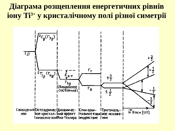 Діаграма розщеплення енергетичних рівнів іону Ti 3+ у кристалічному полі різної симетрії