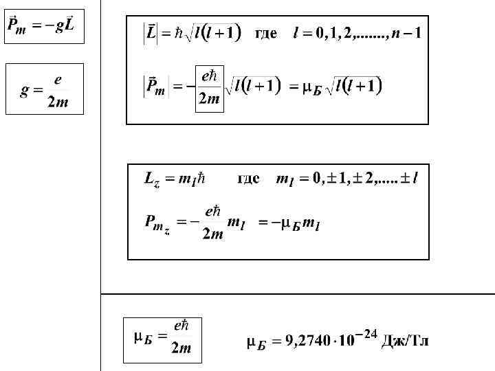 МАГНИТНЫЕ СВОЙСТВА АТОМОВ Связь магнитного момента с орбитальным механическим моментом z L R I Pm v - гиромагнитное отношение
