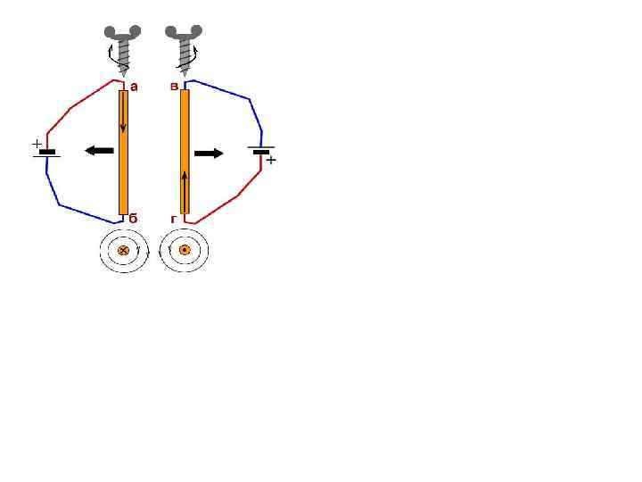 Проводник с током в магнитном поле. Магнитная индукция. Если проводник, по которому проходит электрический ток, внести в магнитное поле, то в результате взаимодействия магнитного поля и проводника с током проводник будет перемещаться в ту или иную сторону. Направление перемещения проводника зависит от направления тока в нем и от направления магнитных линий поля. Допустим, что в магнитном поле магнита NS находится проводник, расположенный перпендикулярно плоскости рисунка; по проводнику протекает ток в направлении от нас за плоскость рисунка. Ток, идущий от плоскости рисунка к наблюдателю, обозначается условно точкой, а ток, направляющийся за плоскость рисунка от наблюдателя, — крестом. Движение проводника с током в магнитном поле 1 — магнитное полюсов и тока проводника, 2 — результирующее магнитное поле. Всегда всё уходящее на изображениях обозначается крестом, а направленное на смотрящего точкой. Под действием тока вокруг проводника образуется свое магнитное поле. Применяя правило буравчика, легко убедиться, что в рассматриваемом нами случае направление магнитных линий этого поля совпадает с направлением движения часовой стрелки. При взаимодействии магнитного поля магнита и поля, созданного током, образуется результирующее магнитное поле, изображенное на рис. 2. Густота магнитных линий результирующего поля с обеих сторон проводника различна. Справа от проводника магнитные поля, имея одинаковое направление, складываются, а слева, будучи направленными встречно, частично взаимно уничтожаются. Следовательно, на проводник будет действовать сила, большая справа и меньшая слева. Под действием большей силы проводник будет перемещаться по направлению силы F.