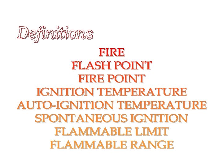 Flash point • The flash point of a liquid fuel is the temperature at which vapour given off by fuel will ignite momentarily when an external flame is applied • At flash point the liquid fuel vapour will not continue to burn • Determines the risk in storing a given liquid fuel at given temperature