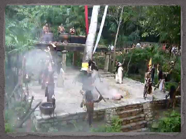 Отображена правительница Хок, которая продёргивает колючую верёвку через свой язык. Ритуальное кровопускание обычно выполнялось публично религиозными или политическими лидерами.