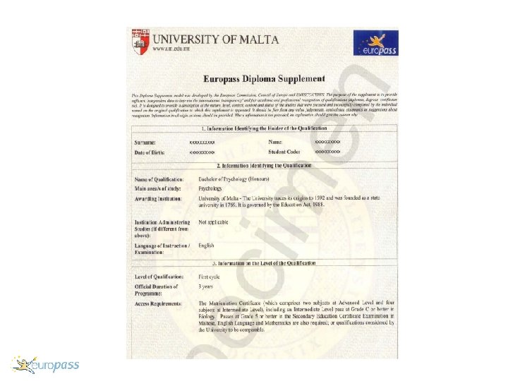 Who can apply? And how? • Individual applicants cannot apply directly. • All applicants must be made by an organisation on behalf of an individual. • To apply visit: http: //europass. eupa. org. mt/documents/