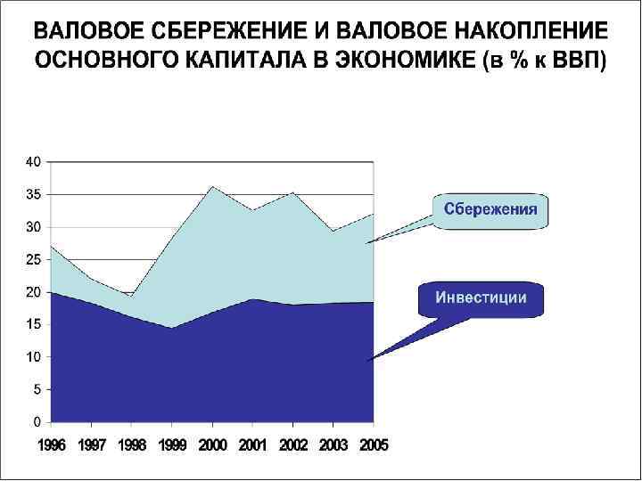 Мировые тенденции динамики сбережений и инвестиций(в% к ВВП) 19811988 19891996 1997 1998 1999 2000 2001 2002 2003 2005 Мир в целом - сбережения - инвестиции 22, 5 24, 0 22, 0 24, 2 22, 8 24, 3 22, 6 23, 5 23, 0 23, 2 23, 4 23, 5 22, 4 23, 0 22, 2 23, 0 22, 5 23, 3 21, 8 22, 2 Развитые страны - сбережения 22, 1 21, 6 22, 0 21, 6 21, 8 20, 6 19, 7 19, 6 19, 2 -инвестиции 22, 6 22, 0 21, 9 21, 7 21, 9 22, 2 20, 7 20, 0 20, 1 20, 8 частные 18, 5 18, 0 18, 2 18, 7 17, 2 16, 6 16, 7 … 4, 0 3, 6 3, 4 3, 5 3, 4 … - сбережения 18, 4 16, 7 18, 1 18, 8 18, 4 16, 5 15, 2 14, 8 12, 9 - инвестиции 20, 6 18, 3 19, 9 20, 7 20, 9 21, 1 19, 1 18, 6 18, 9 19, 7 государственные США - сбережения … 21, 5 21, 9 22, 0 21, 4 21, 3 21, 5 20, 7 - инвестиции Зона евро* … 21, 3 20, 3 21, 0 21, 3 22, 0 20, 9 20, 1 20, 8 - сбережения 31, 8 32, 4 30, 8 29, 7 28, 4 28, 7 27, 7 26, 5 26, 0 26, 9 - инвестиции Япония 29, 4 30, 3 28, 6 26, 8 25, 9 26, 2 25, 6 23, 7 23, 5 23, 2 … 34, 5 32, 6 31, 8 30, 8 28, 9 28, 7 28, 2 31, 8 … 27, 6 25. 1 26, 0 25, 5 22, 8 20, 9 20, 7 20, 2 … … Новые индустриальные - сбережения частные страны Азии** … 6, 9 7, 3 6, 6 6, 2 8, 0 - инвестиции государственные … 32, 1 31, 6 24, 2 25, 8 26, 8 23, 8 22, 7 22, 8 25, 6 частные … 22, 7 22, 0 14, 9 17, 6 19, 2 16, 1 16, 2 … государственные … 9, 4 9, 6 9, 3 8, 2 7, 6 6, 7 … Развивающиеся страны, - сбережения 20, 2 21, 9 24, 6 24, 2 25, 9 26, 3 24, 9 25, 5 26, 4 30, 4 - инвестиции 24, 1 27, 1 28, 3 26, 7 25, 8 25, 9 26, 5 27, 8 26, 7 - сбережения 18, 2 22, 7 22, 4 27, 3 … … 16, 4 20, 2 24, 8 32, 3 … … 17, 4 19, 8 28, 3 32, 8 19, 4 24, 0 15, 2 20, 3 29, 0 30, 0 18, 0 21, 0 15, 9 19, 9 31, 4 29, 5 17, 6 20, 0 18, 9 18, 4 30, 6 29, 6 21, 4 21, 6 18, 9 19, 6 29, 1 31, 2 23, 9 23, 2 18, 4 19, 9 23, 5 20, 3 21, 6 21, 3 29, 3 30, 2 38, 3 32, 4 32, 6 34, 8 24, 1 24, 3 29, 5 23, 3 23, 7 20, 9 в том числе: Африка - инвестиции Азия - сбережения - инвестиции -сбережения Страны с переходной экономикой (для 2005 г. -инвестиции – страны СНГ) *Австрия, Бельгия, Германия, Греция, Испания, Италия, Ирландия, Люксембург, Нидерланды, Португалия, Финляндия, Франция. **Гонконг (Китай), Корея, Сингапур, Тайвань (Китай).