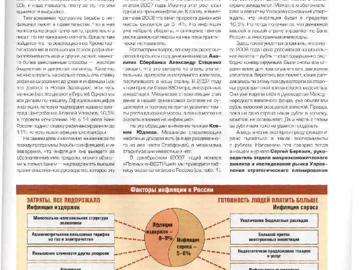 Причины инфляции: 1. Неправильная денежно-кредитная политика ЦБ (эмиссия) 2. Бюджетный дефицит (эмиссия) 3. Милитаризация экономики (отраслевая диспропорция) 4. Наличие монополий (высокие монопольные цены) 5. Неразумная налоговая политика (рост налоговых ставок) 6. Внешние факторы (импортируемая инфляция)