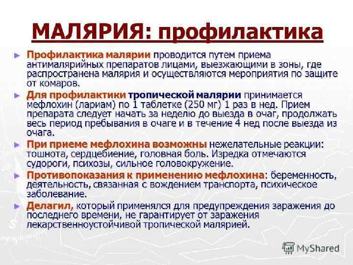 Защита от комаров • Применение реппелентов: «Insect repellent» , содержащих ДЭТА и ДМФ (диметилфталат), «My-lol» , содержащий ДБФ и ДМФ (дибути- и диметилфталат) • Засетчивание противомоскитными сетками окон и дверных проемов в жилых и служебных помещениях, использование сетчатых пологов (из терилена), инсектицидов, содержащих пиретрум ( «Flit gun» )