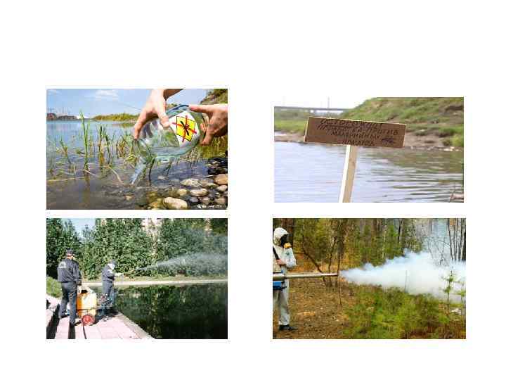 Защита от комаров • Комплекс бонификационных мероприятий, применяют ларвицидные средства в местах выплода комаров и имагоцидные препараты для уничтожения комаров в жилых и хозяйственных помещениях • Ларвицидные средства –хлорорганические соединения (ГХЦГ, диэлдрин), нефть, а также фосфорорганические вещества (малатион, фенитротион, карбаматы – пропуксур и др. )