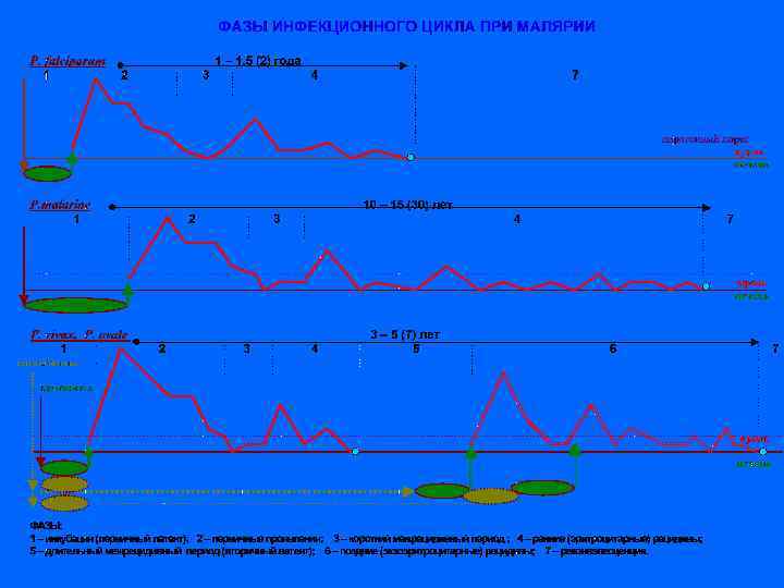 Plasmodium falciparum в препаратах крови Тонкий мазок крови Толстая капля крови 1: Эритроциты; 2 -18: Трофозоиты ( 2 -10 соответствуют юным кольцевидным трофозоитам); 19 -26: Шизонты ( 26 – разрушенный шизонт); . 27, 28: зрелые (женские) макрогаметоциты; 29, 30: зрелые (мужские) микрогаметоциты