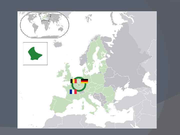 Официальные языки: люксембургский, французский, немецкий. Столица: Люксембург. Крупные города: Эш-сюр-Альзет, Дифферданж, Дюделанж. Форма правления: конституционная монархия. Территория: 2 586, 4 км² (167 -ая в мире) Валюта: Евро. Часовой пояс: +1 (отстает от московского на 2 часа).