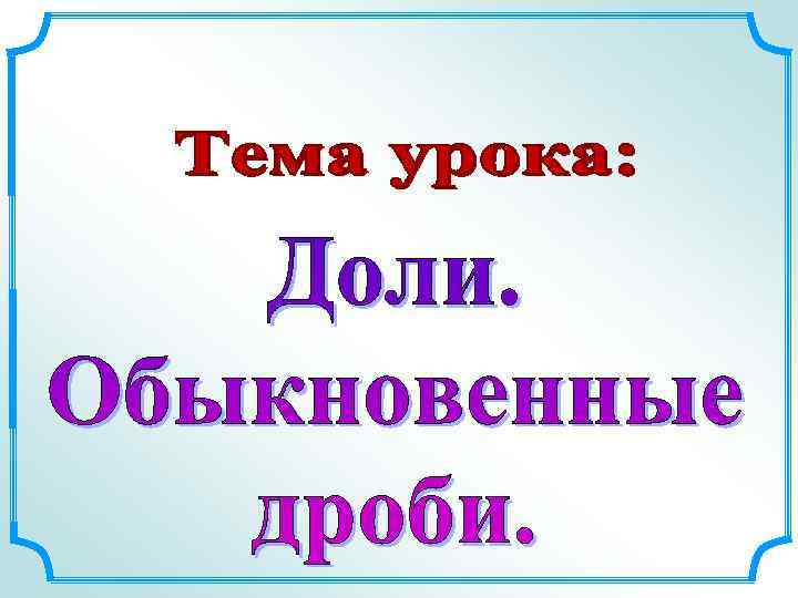 Записи вида называют обыкновенными дробями. Числитель дроби Знаменатель дроби показывает на сколько долей делят, а числитель дроби показывает – сколько таких долей взято.