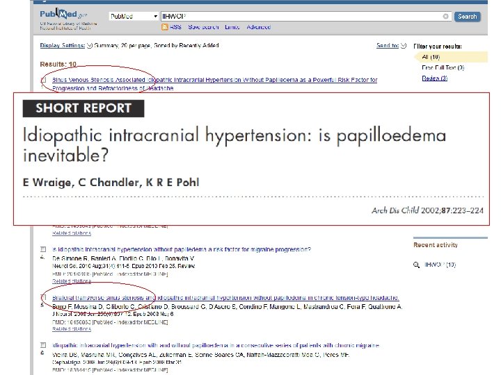 „False diagnosis of papilledema and IIH“ • 18 children referred with disc swelling and suspected IIH. • Following a tertiary ophthalmological review: papilloedema was excluded in 10. • In these 10 children, five had a mean opening pressure on lumbar puncture of 27. 2 cm H 2 O, range 19– 32 Mishra A et al. Eur J Paediatr Neurol 2007 ; 11 : 39 – 42